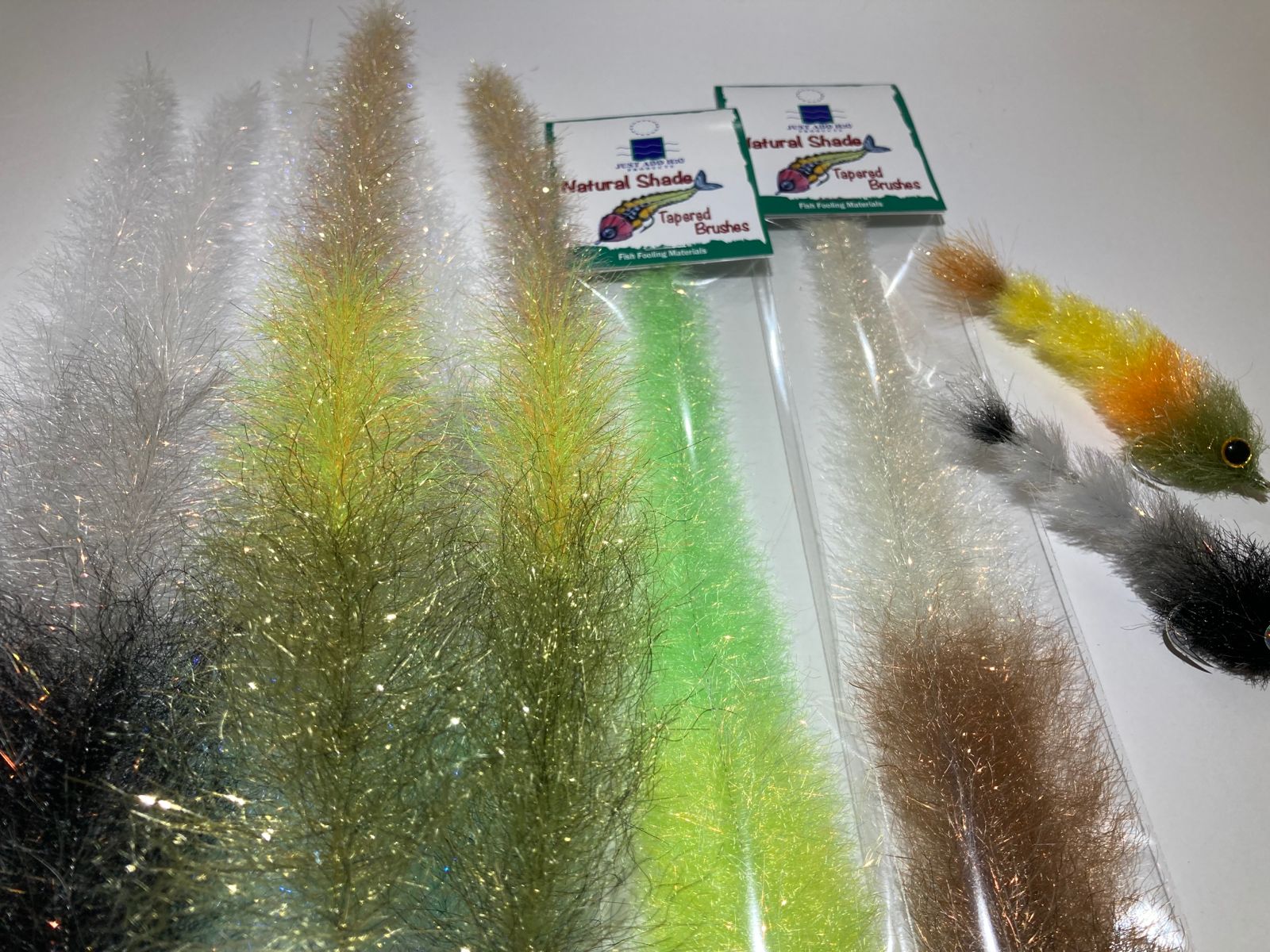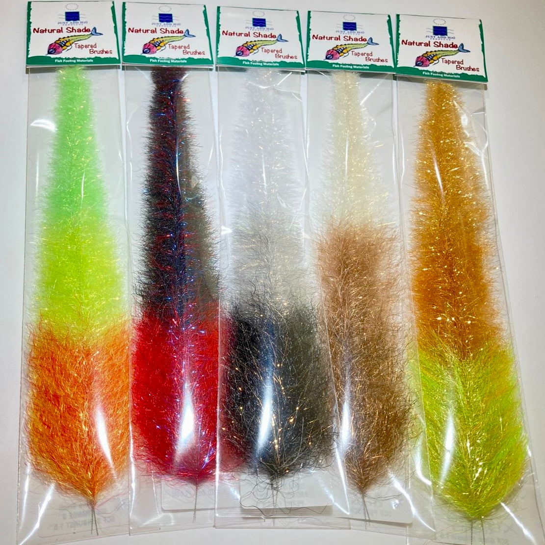 Tapered Brushes are the perfect choice for dressing the shanks of articulated flies.1 These brushes combine natural, lifelike colors from head to tail for superior realism. The Natural shade brushes are crafted using SF Flash Blend Fibers and feature a precise taper, decreasing from 2$2 \frac{1}{2}"$ down to 3$\frac{1}{2}"$.4 Each pack contains two 5$11"$ brushes.6