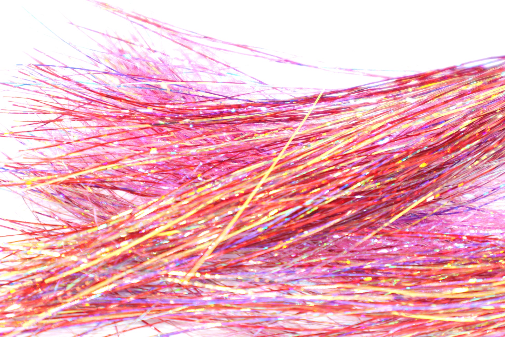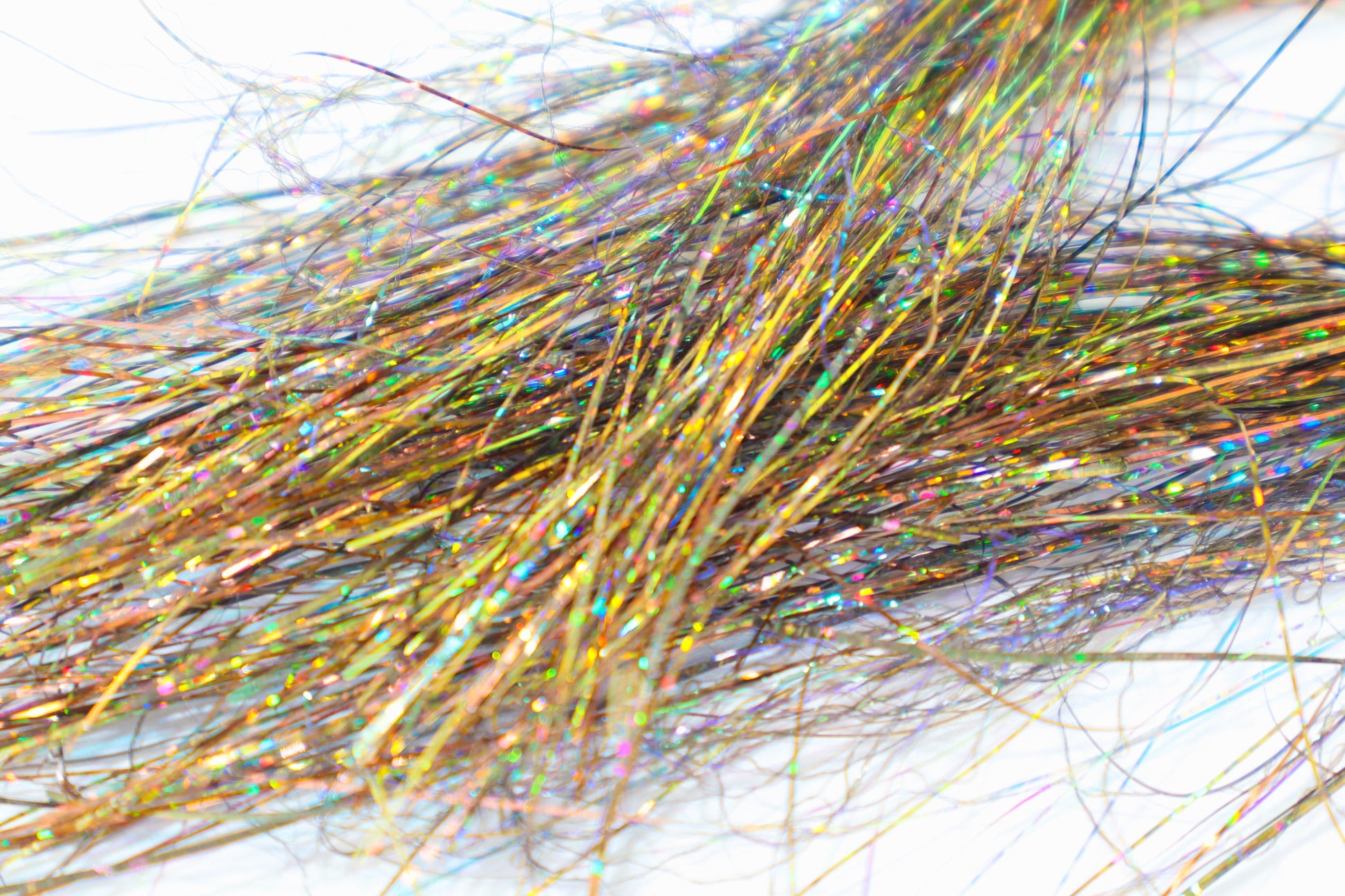 Our Age Krinkle Flash is a blend of Krinkle Flash, Holographic Tinsel, and UV Fibers. They are one of a kind. Below is a brief description of their components: